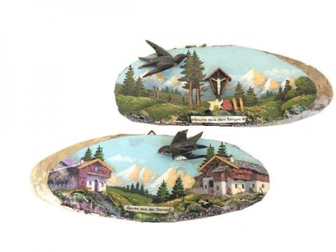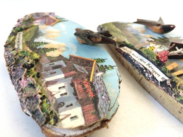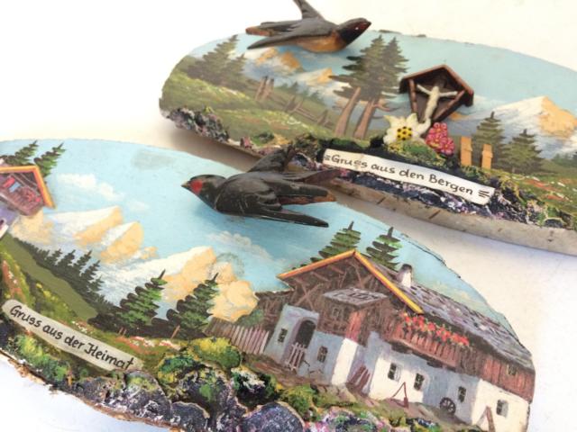 2 Gruß-Holzbretter 60/70er "eine Schwalbe macht noch keinen Kitsch"